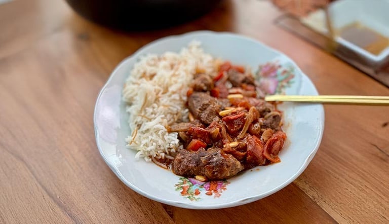 The flavor of this dish tastes just like our moms’ Arabic stews. نكهة بيتية… كباب بسبع بهارات مطبوخ بصلصة طماطم غنية.